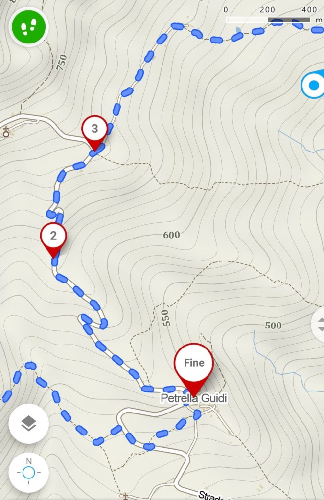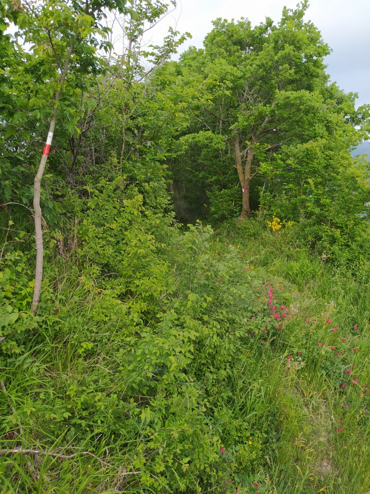 L’ultimo tratto del sentiero 099 è il più bello: si lascia la sterrata e si gira a sinistra, come segnalato. Per i deboli di ginocchia: fate attenzione, si scende molto. La vegetazione è fitta e l’erba alta. Forse nel periodo estivo è tenuto meglio, ma poco importa dato che è ben segnato e porta dritto dritto sulla strada Petrellese. Un ultimo saluto a Petrella e torniamo alle macchine.