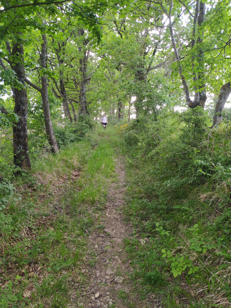 Alla casa del castagno il sentiero si immette sulla strada asfaltata e si riprende al di là della carreggiata, dove un sentiero un po’ losco scende nel bosco. Si incrocia con altri sentieri mille volte, ma non ci si sbaglia se si scende dritto per dritto.