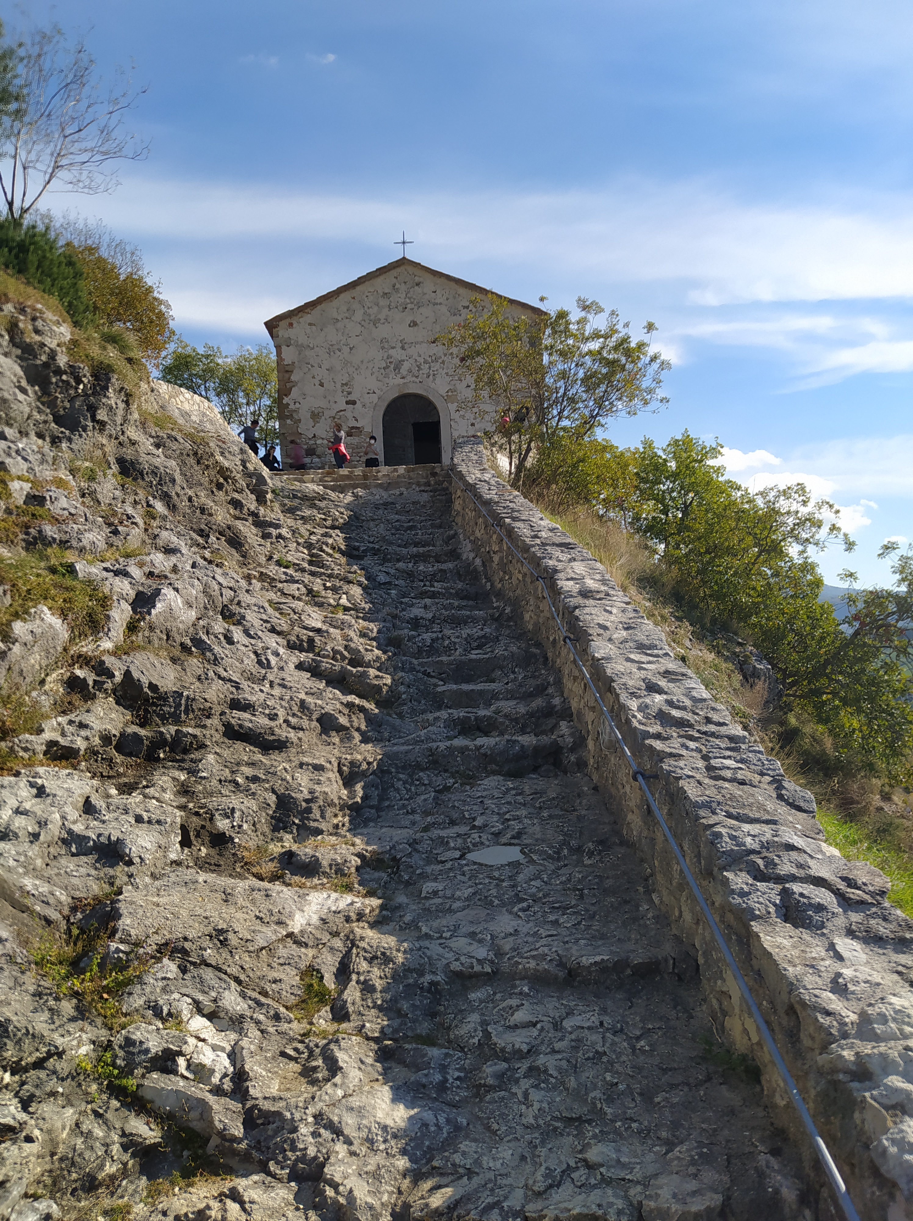 L’ultimo pezzo prima del santuario è una sorta di scala a chiocciola ricavata nella roccia. Per fortuna c’è un corrimano in ferro.