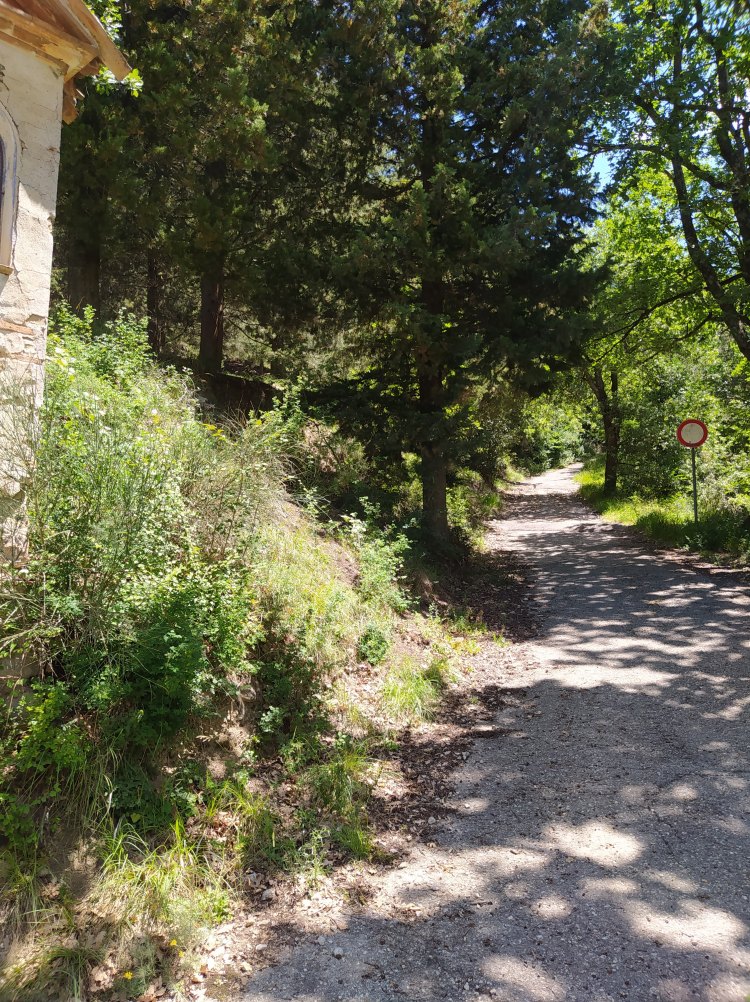 In alternativa, dopo pochi passi di strada asfaltata parte un sentiero fra i cipressi, sulla sinistra, più breve ma molto più ripido. A voi la scelta.