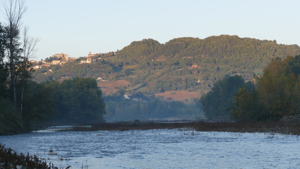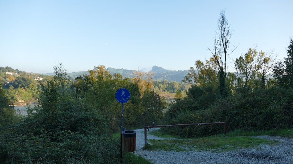 Da questo momento in poi il trekking sembrerà una piacevole passeggiata, completamente in piano. In certi punti si può raggiungere facilmente il Marecchia, deviando leggermente a sinistra. In lontananza vediamo Verucchio sorgere dalle acque, spettacolare.