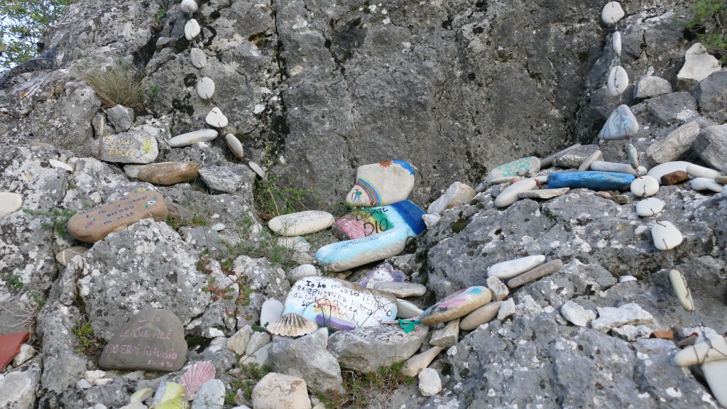 E’ bello sottolineare che durante la salita al santuario il visitatore incontra tanti piccoli segni di devozione: statuine, incisioni, scritte e così via.