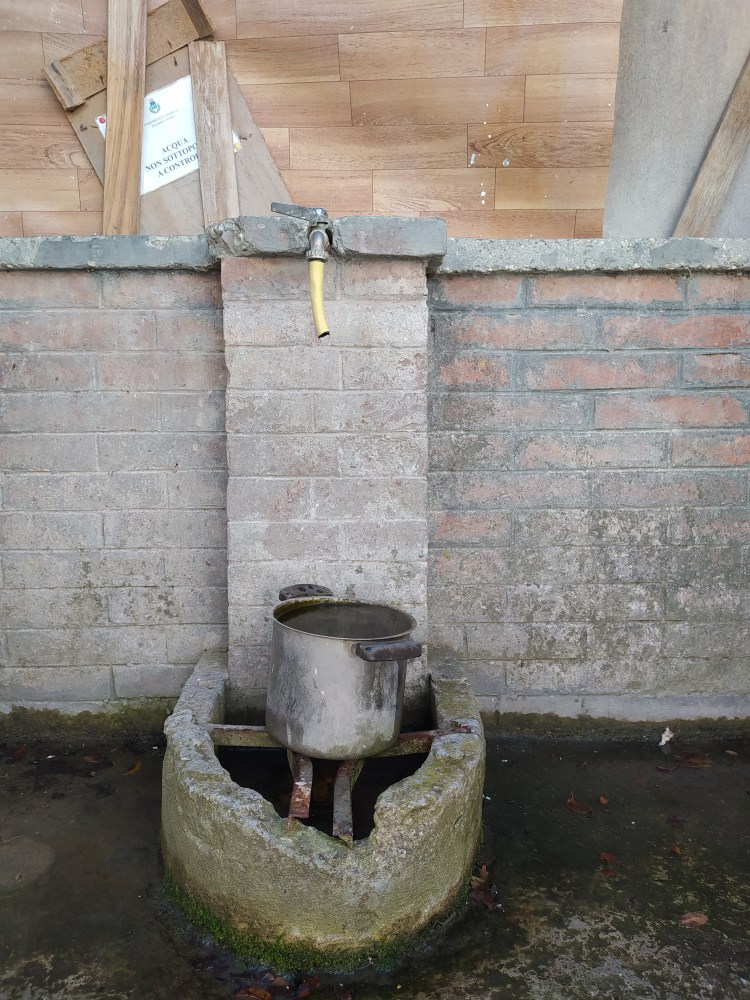 Pranziamo al sacco sui tavoli da pic nic che troviamo nel centro del paese, vicino a un campo da calcetto. Riempiamo le borracce alla fonte ed è già ora di tronare sulla via del ritorno.