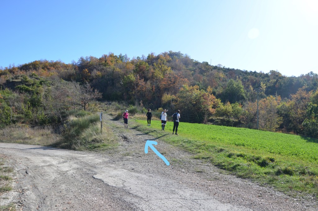 Lasciandoci il paese alle spalle ci troviamo poco dopo di fronte a un bivio. Come sempre è segnato e teniamo la destra per continuare su strada asfaltata. Passiamo poi di fronte a un cimitero e da lì a poco troviamo un altro bivio. Anche qui è segnato (seguiamo l’AVP) e anche qui teniamo la destra.