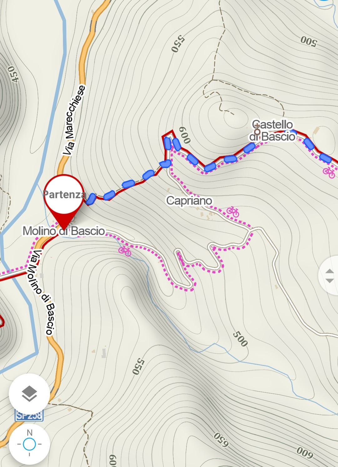 - Punti acqua: Molino di Bascio, Castello di Bascio, Miratoio.