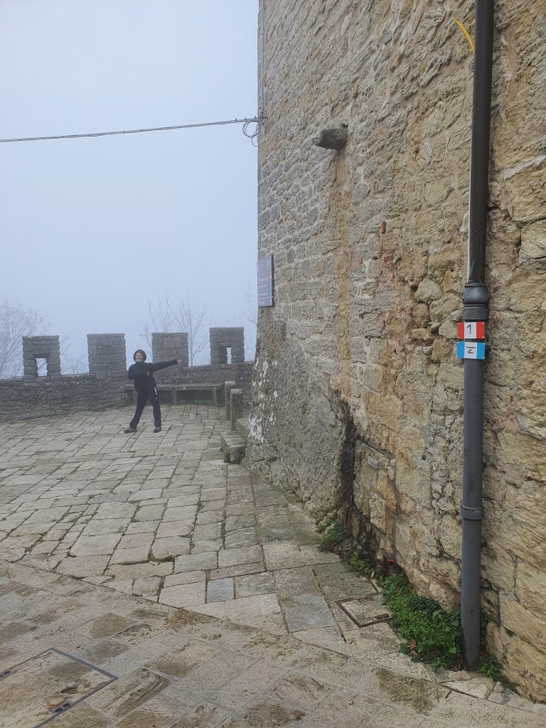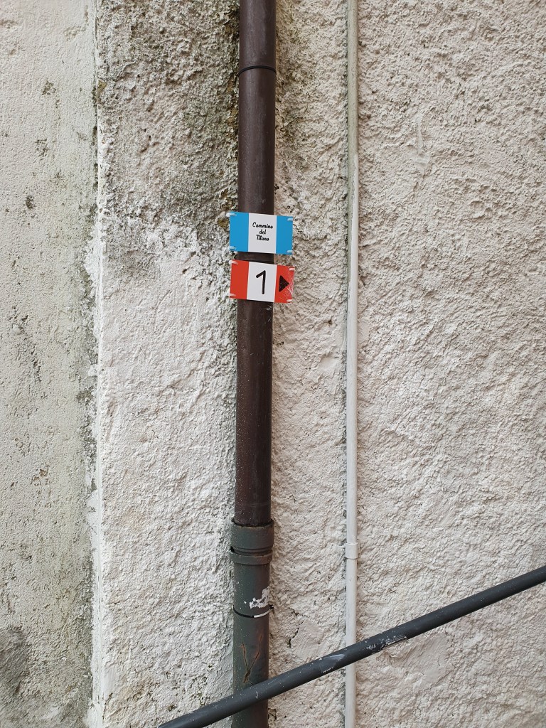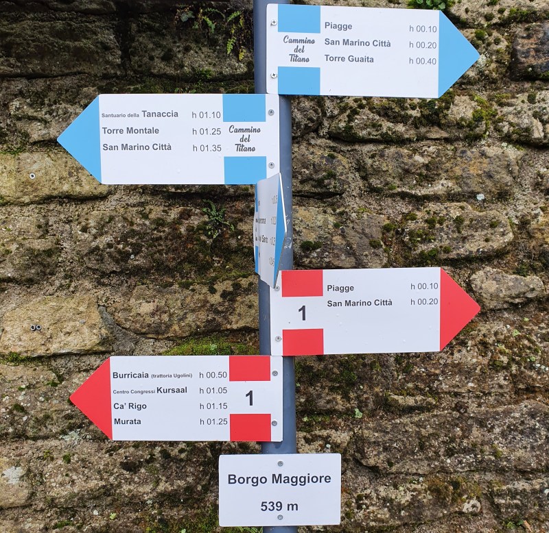 Il percorso inizierebbe dalla piazza principale di Borgomaggiore. L’utilizzo del condizionale è dovuto al fatto che, sebbene la piazza offra anche parcheggi gratuiti, sono spesso tutti occupati per cui scegliamo di parcheggiare in un’area di sosta camper gratuita sottostante (Area Sosta Camper San Marino – P13) come suggerito dall’app Cammino del Titano da cui abbiamo preso spunto per questo percorso.