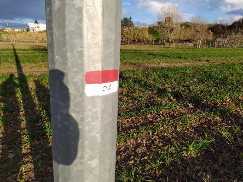 Inizialmente il sentiero curva verso destra. Dopo qualche metro ecco che la traccia sfumata in mezzo alle cipolle di qualche contadino si trasforma in una vera autostrada, ampia e perfino timidamente segnata (sentiero 01). In poco tempo arriviamo alla via Marecchiese, a livello della rotonda del ristorante Domiziano.