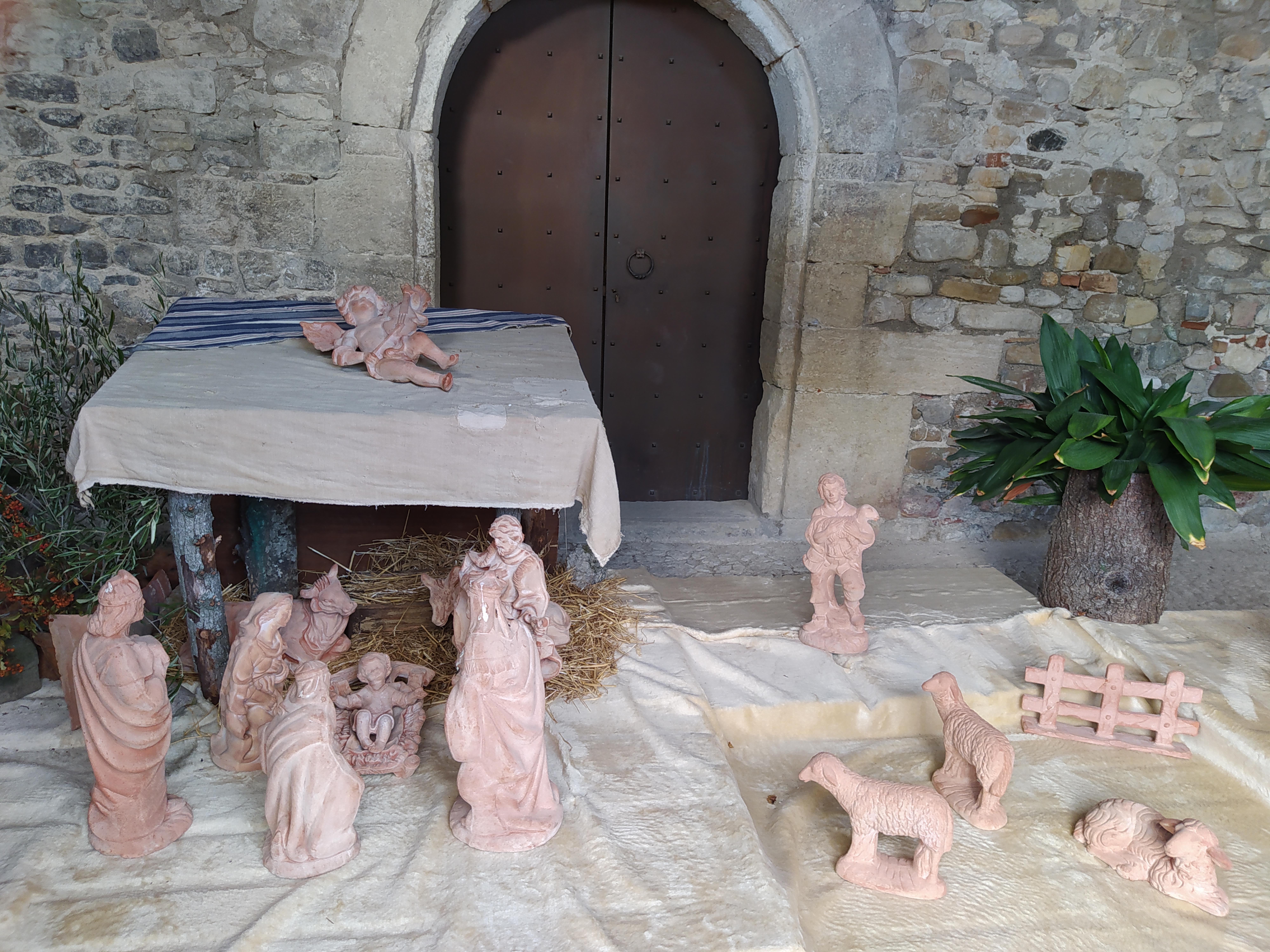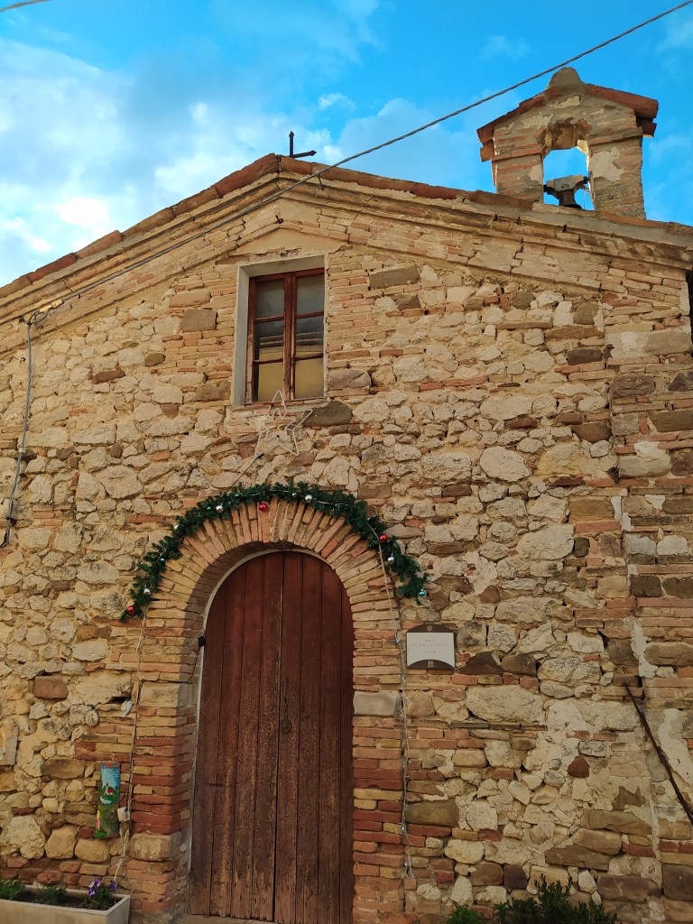 La salita assume tutt’un altro sapore quando passiamo attraverso la Pieve romanica di San Martino in Raffaneto, una delle più antiche di Verucchio. Solitamente recintata da un cancello chiuso con un lucchetto, la troviamo inaspettatamente aperta: all’interno della pieve è stato infatti allestito un presepe. L’atmosfera povera ed essenziale non deve essere troppo diversa da quella che si respirava a Betlemme.