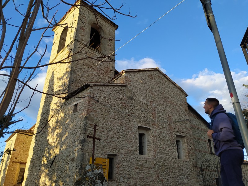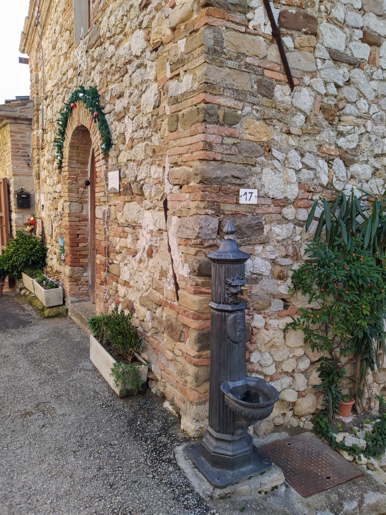 Ancora qualche passo e ci imbattiamo nella chiesetta di Sant’Antonio (XIII secolo), purtroppo chiusa. Ai suoi piedi troviamo un’altra ottima fonte. Dalla chiesetta svoltiamo a 90° e teniamo la sinistra, prendendo quota a ogni passo. Fra casupole fatiscenti e graziose villette ristrutturate con vista sulla valle, questo angolo di Verucchio merita una visita. Purtroppo non abbiamo molte foto: quando si fatica, la macchina fotografica rimane nello zaino.