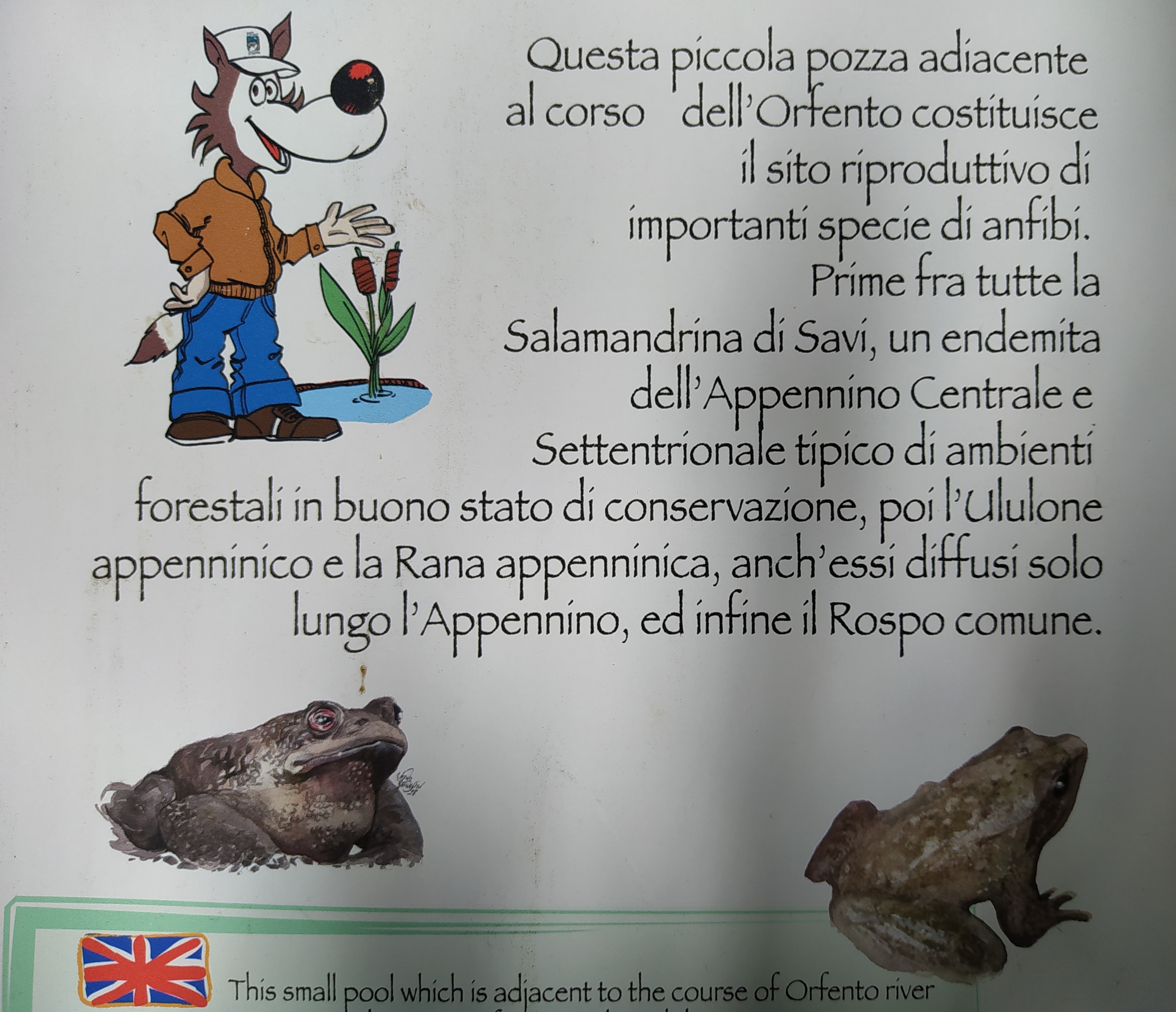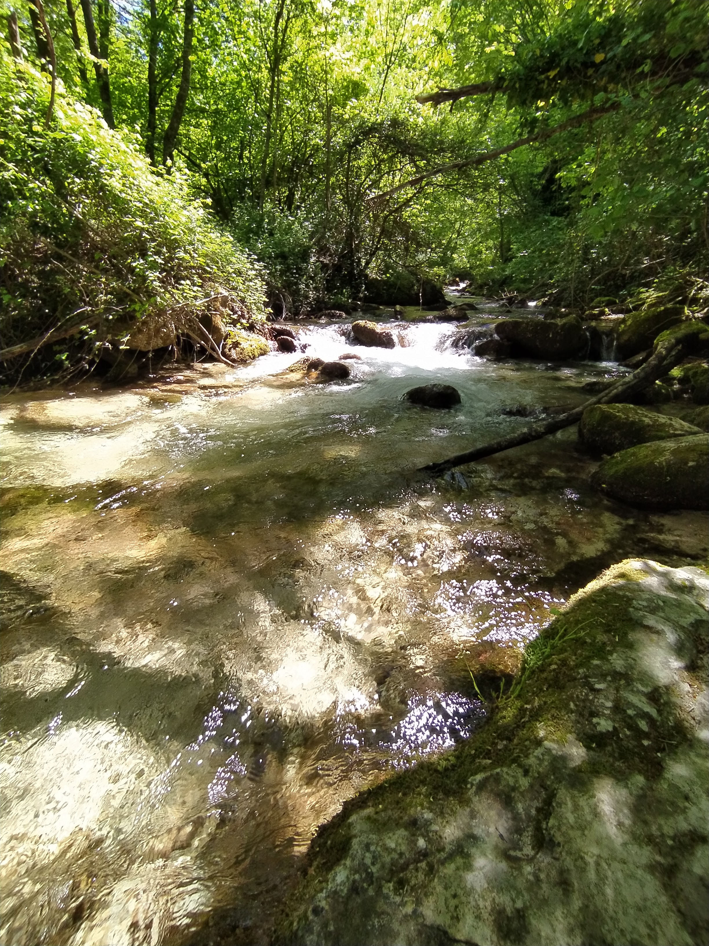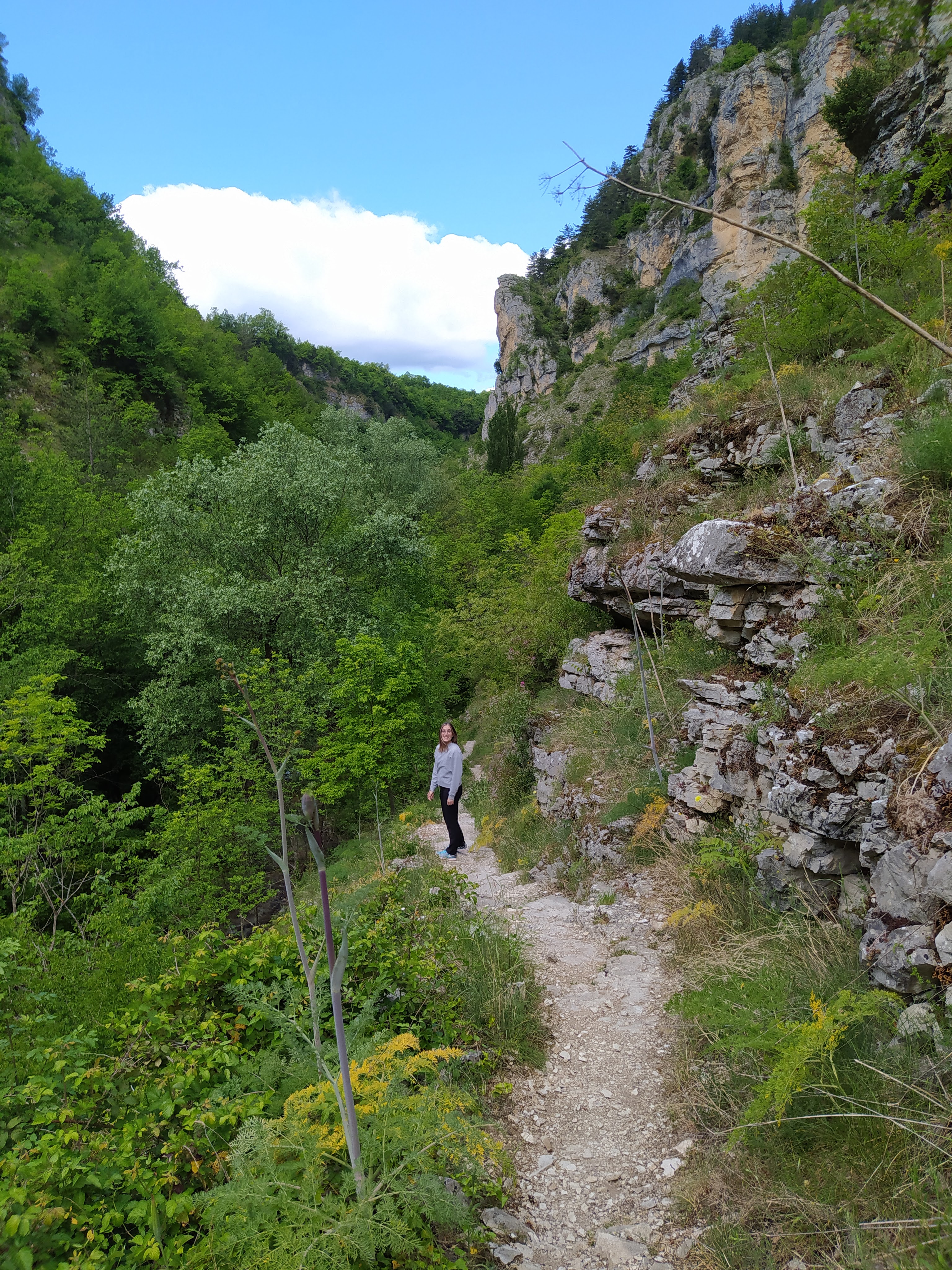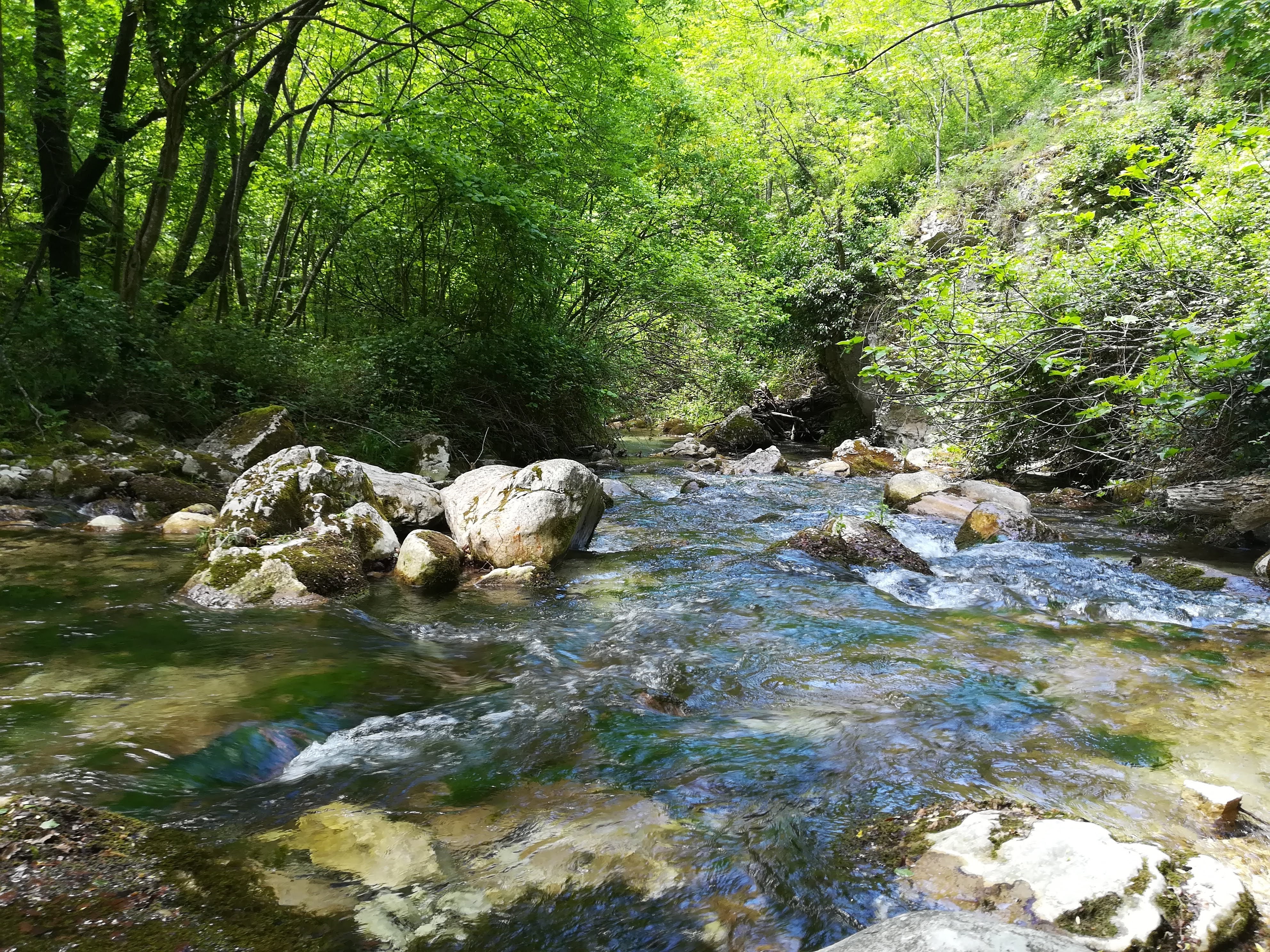 Il sentiero ricalca il tragitto dell’Orfento nel suo scorrere verso valle. E’ veramente bello camminare con il suono dell’acqua in sottofondo. A un certo punto, un cartellone turistico ci informa sulla presenza di un sito di riproduzione di anfibi, quali l’Ululone e la Rana appenninica. Segnaliamo infine la possibilità di visitare la grotta di Cantrella effettuando una deviazione dal sentiero S.
