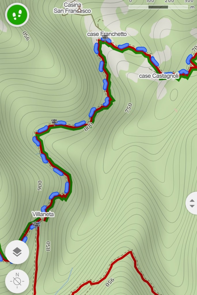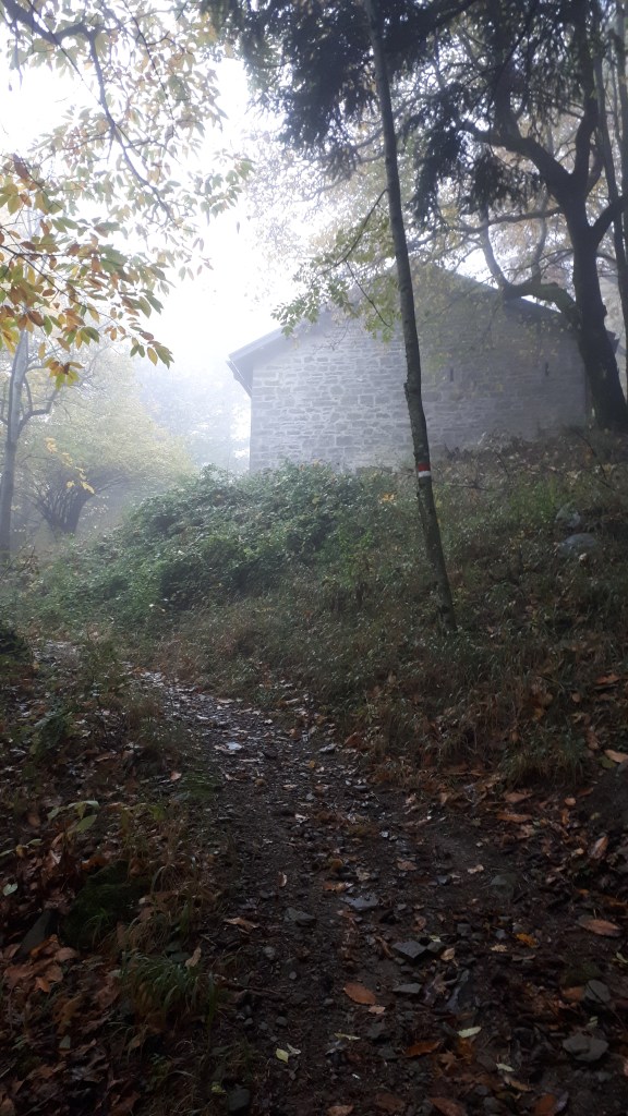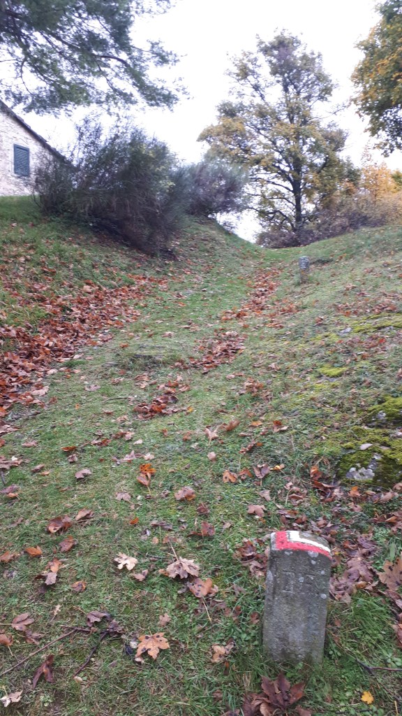 Passata la chiesa il percorso ricomincia a salire su una strada asfaltata. Non fatevi spaventare dal primo strappo, poi la salita torna ad essere dolce. Durante la salita si incontrano diverse case in pietra, diroccate.
