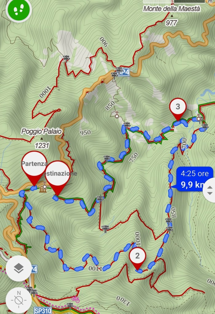 - Percorso ad anello di 12km, con 500m di dislivello. Circa 4h di cammino