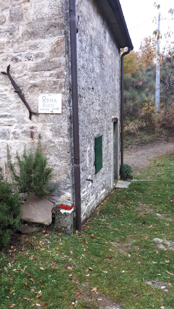 Dopo circa 30 minuti di salita si arriva ad un casolare (questa volta abitato). Attenzione a tenere la destra: affiancato il casolare tornerete a vedere i segni del percorso (la strada a sinistra porta di nuovo giù al fiume, pertanto non seguitela).