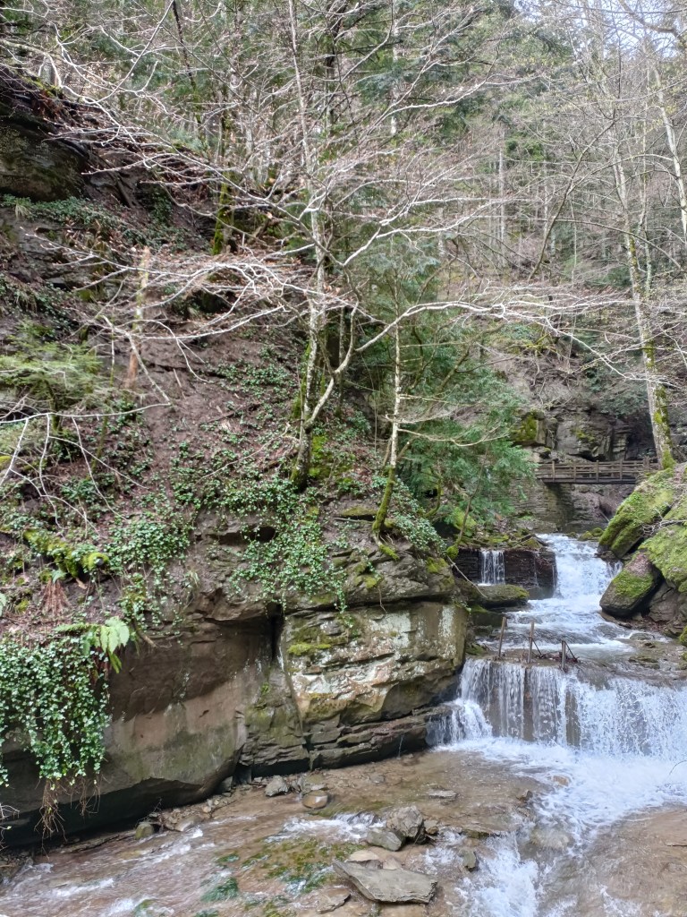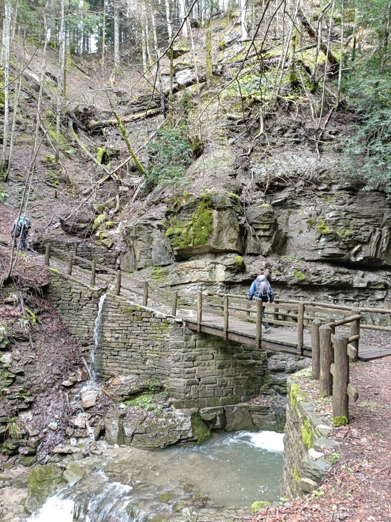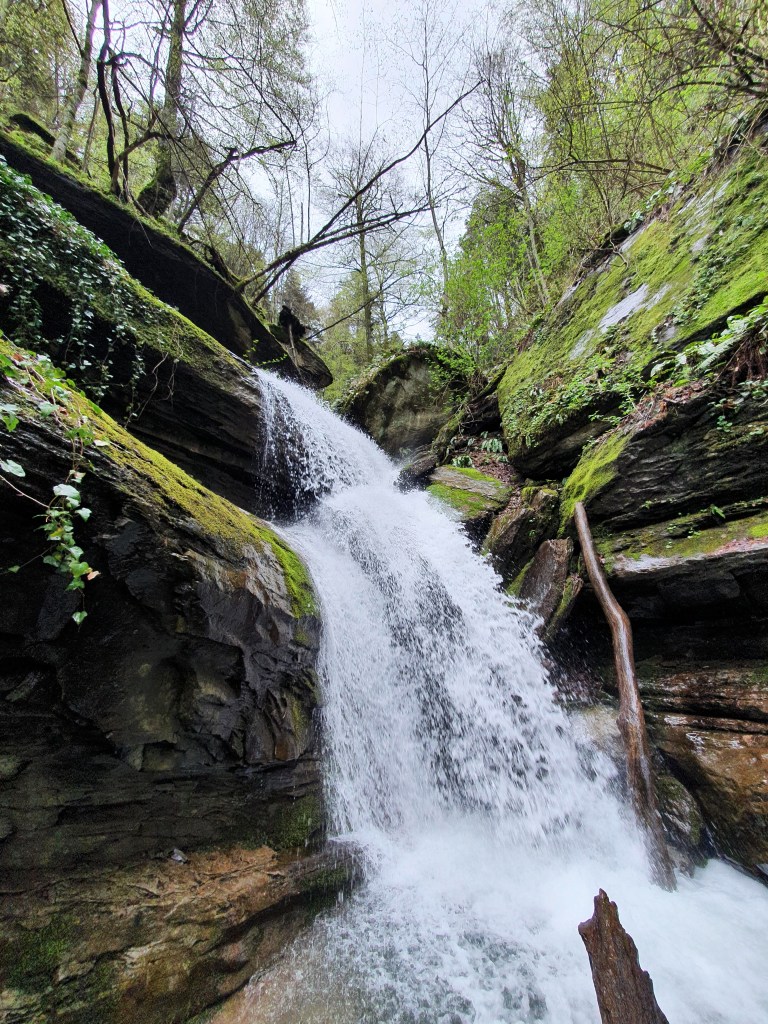 Il primo must di questo giorno è senza dubbio la Cascata degli Scalandrini. La raggiungiamo con una minima deviazione del sentiero sulla sinistra, come ben segnalato dai cartelli e come suggerisce il fragore delle acque. Un corrimano aiuta a raggiungere proprio il punto dove la forza del torrente è maggiore. Attenzione a non scivolare: si cammina su roccia ed è facile perdere l’equilibrio.
