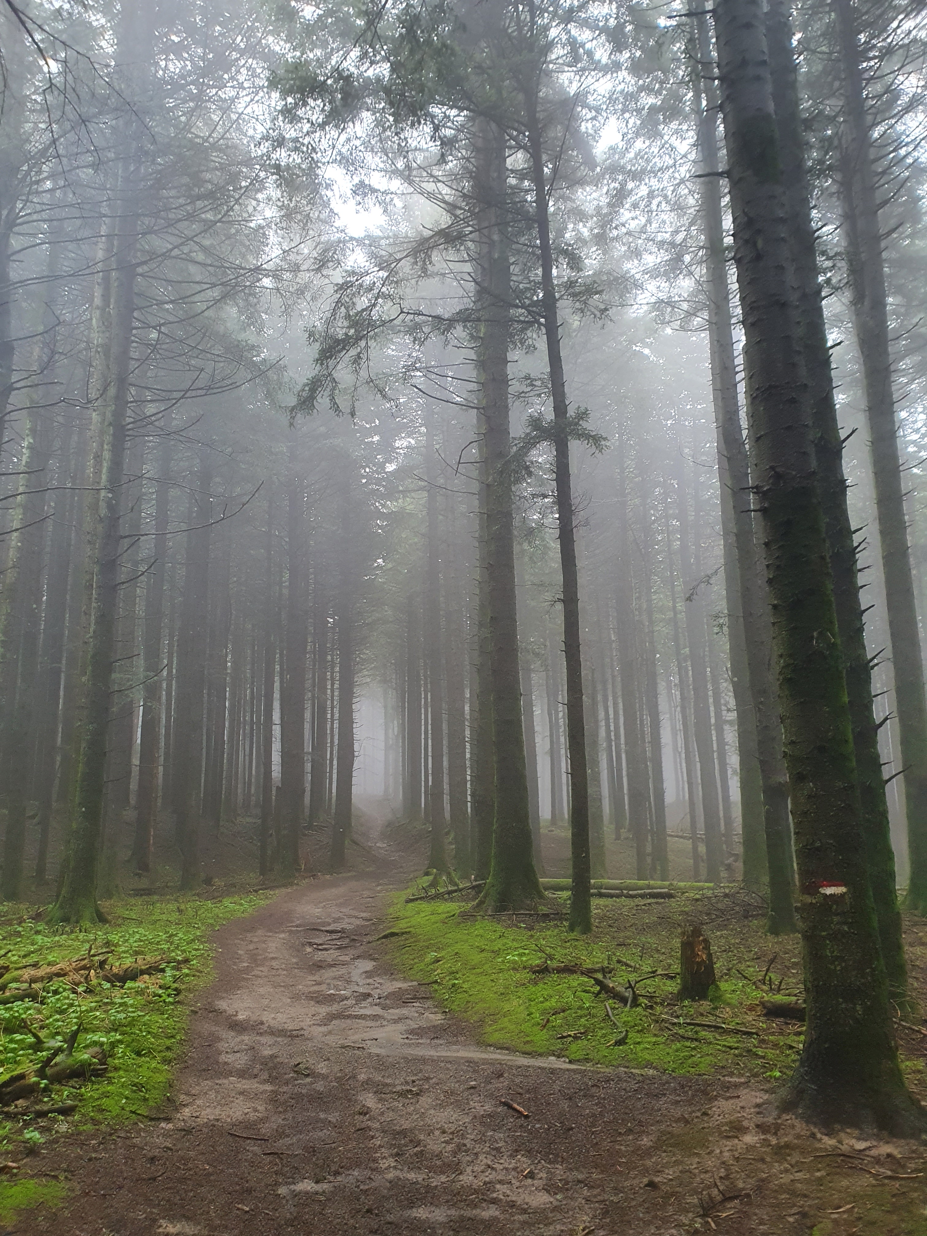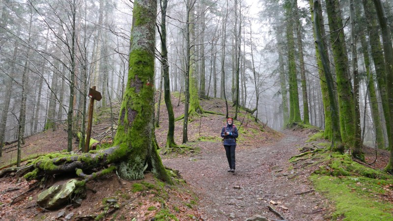 Camminiamo nella nebbia fino alla deviazione per il 68, che ci conduce all’Eremo di Camaldoli. E’ un sentiero decisamente “spacca ginocchia” per la sua forte pendenza in discesa.