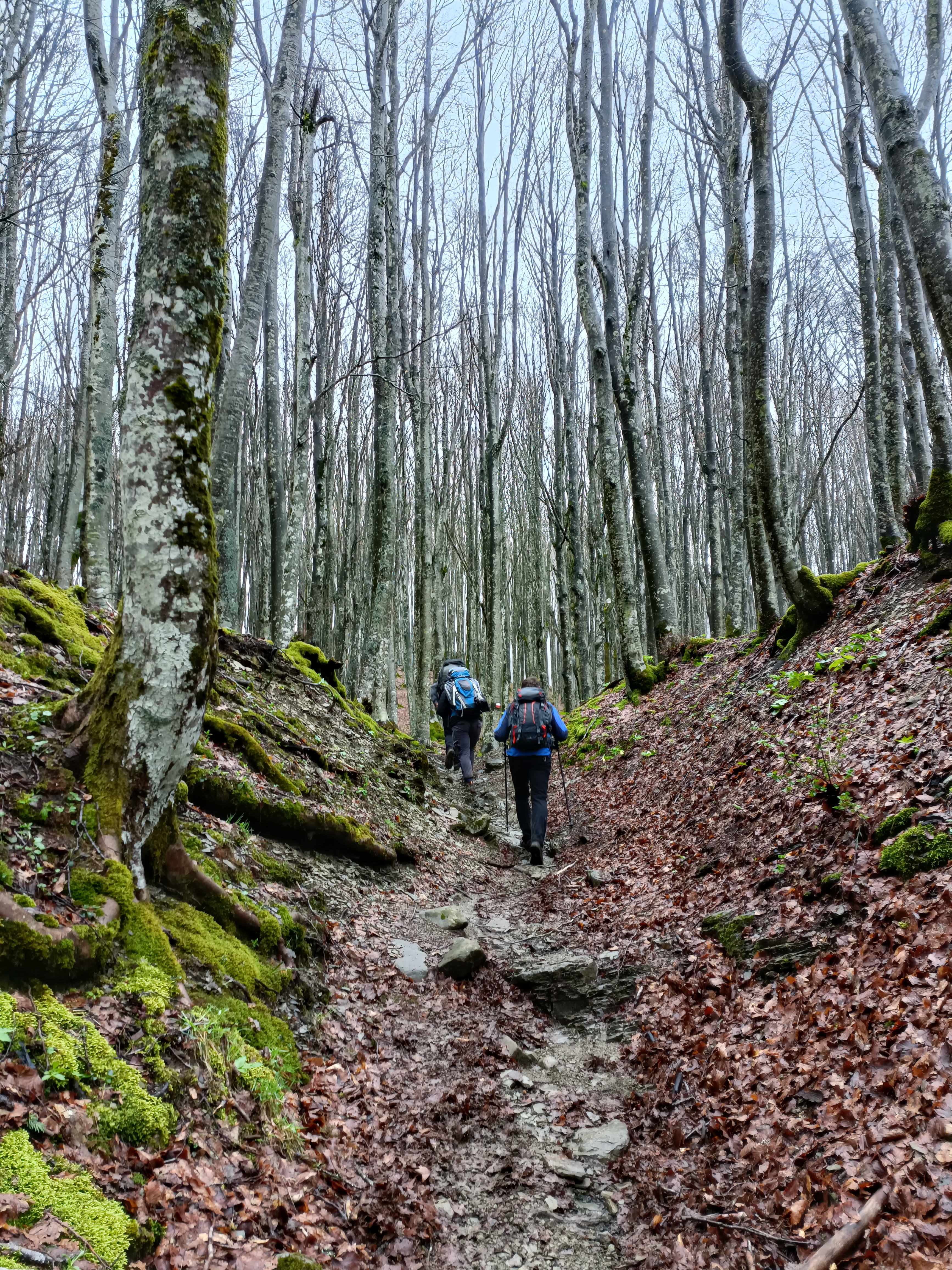 Dall’eremo prendiamo il 74 e poi lo 00 per ritornare al Rifugio Fangacci. E’ questione di pochissimo kilometri che vi regaleranno uno dei tratti di faggeta più belli dei tre giorni.