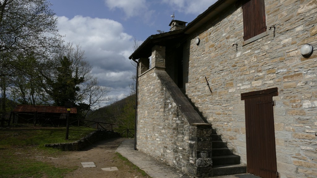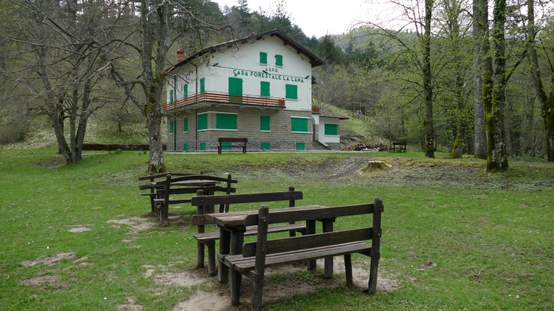 La nostra tre giorni parte dal Rifugio Fangacci, dove approfittiamo dello spiazzo antistante per parcheggiare la macchina. La scelta di partire da questo punto piuttosto che dalla più ovvia Badia Prataglia deriva dalla necessità di accorciare l’ultima tappa, permettendo ad alcuni del gruppo di prendere i mezzi per il ritorno nelle rispettive città. Ci sbilanciamo nel dire che ci siamo persi poco: il sentiero da Badia al rifugio corre parallelo alla strada senza particolari attrattive.