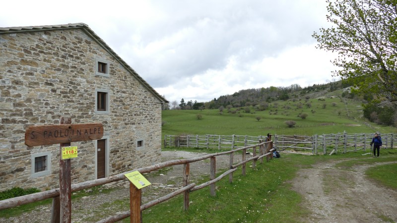 La fatica è ripagata dalla piana di San Paolo in Alpe. Dopo ore nel bosco, è emozionante ritrovarsi su un altopiano, racchiuso da una cinta di montagne verdi a perdita d’occhio. La sua posizione strategica venne anche utilizzata durante la seconda guerra mondiale per l’invio di aiuti alleati ai partigiani. Quando però le truppe nazi-fasciste occuparono l’altopiano, diedero alle fiamme la Chiesa di Sant’Agostino (usata come magazzino per le munizioni), di cui oggi rimangono i ruderi, e il “Casone”, ovvero la casa colonica oggi in parte riconvertita in un bellissimo bivacco sempre aperto.