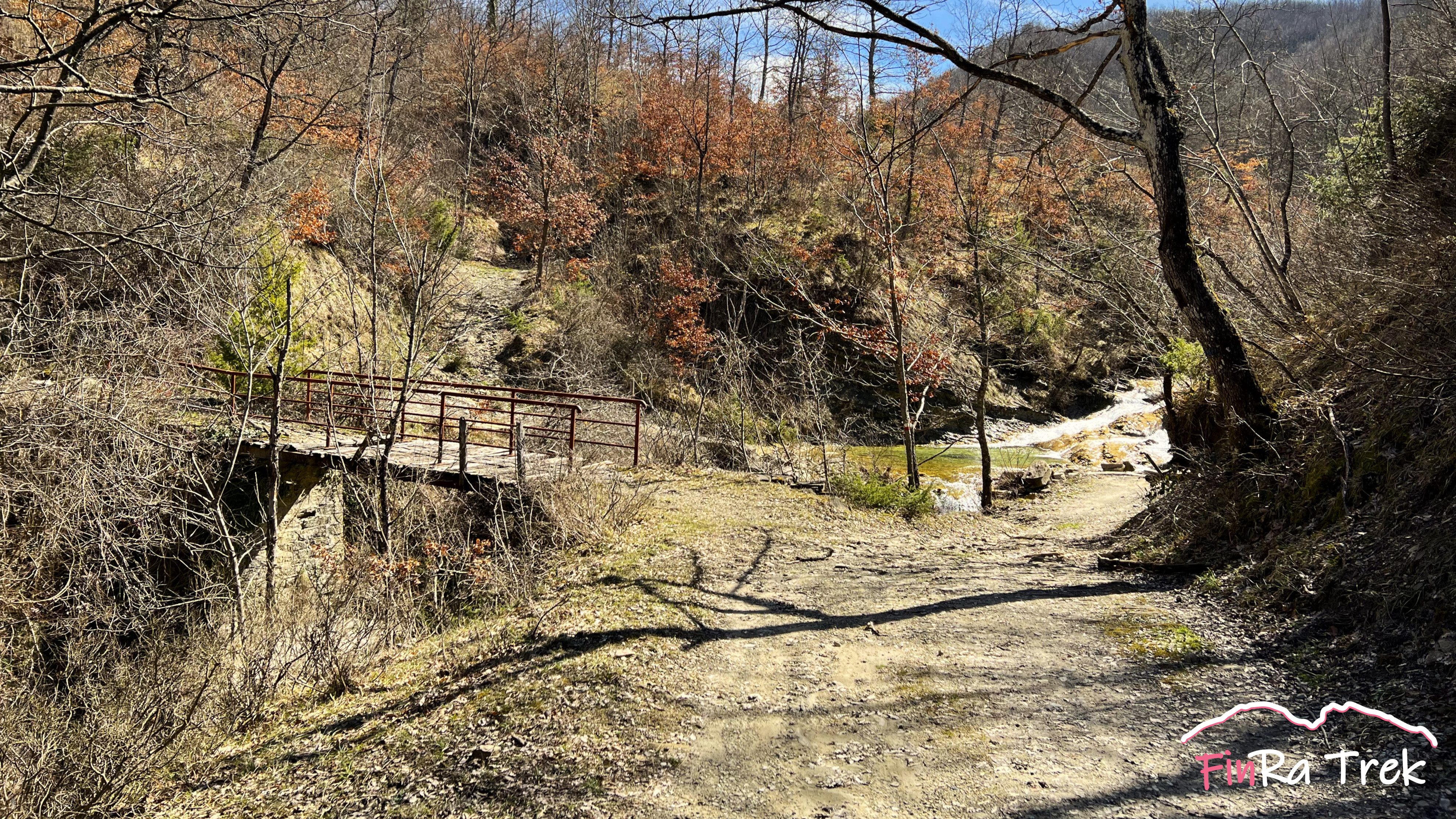 - Cascate del Presalino-> Strada Comunale Pian di Botta->Strada della Luna-> P4-> Piscina Nera-> CAI 5-> Poggio Monterano-> P2-> Bivacco di Risecco->Poggio Baroni-> Madonna del Presale-> Cascate del Presalino.
