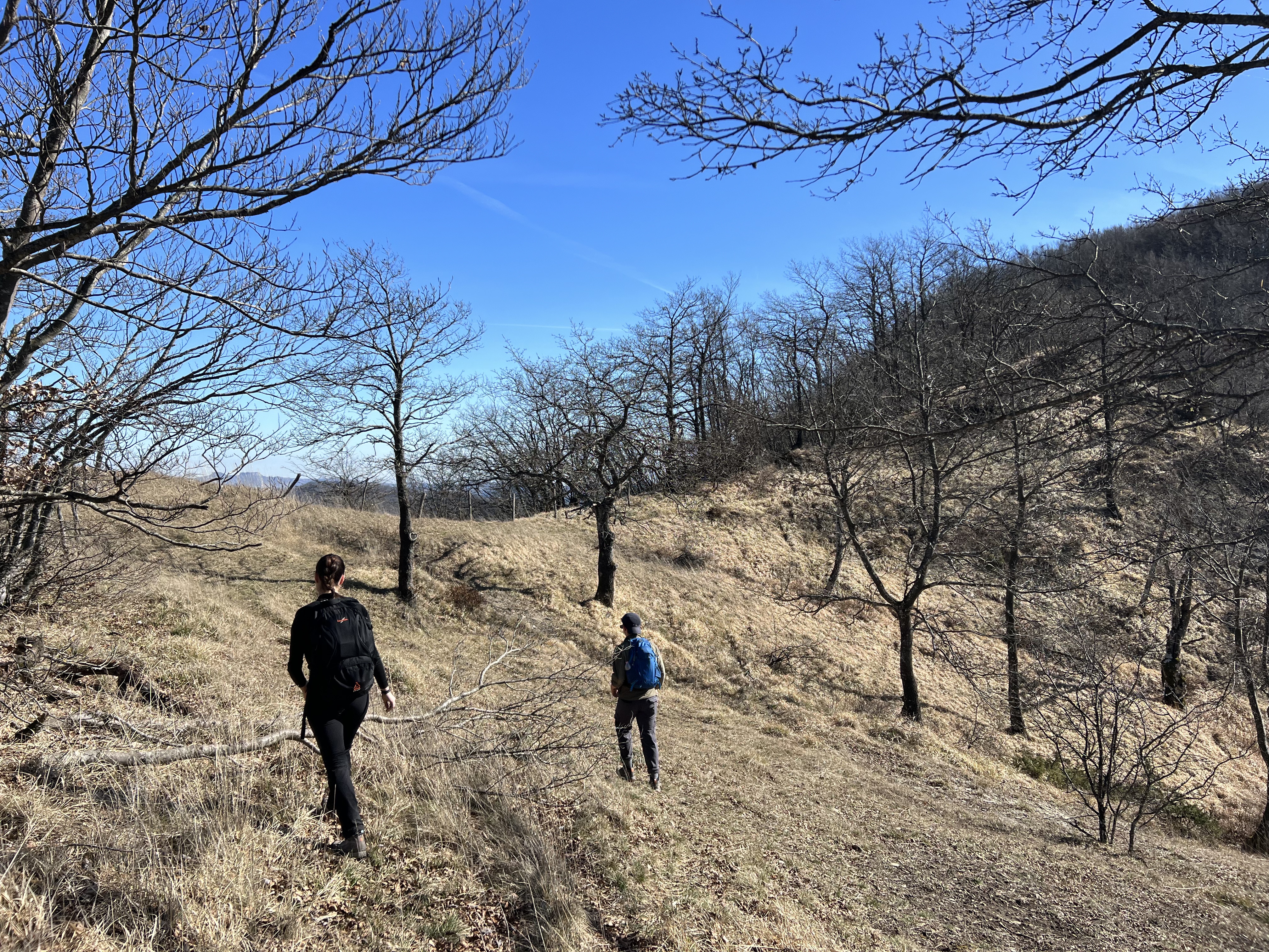 La salita si fa sentire da subito, ma il panorama ripaga dello sforzo. Si cammina su un meraviglioso crinale, da cui si vede tutta la parte alta della Valmarecchia, dal Monte Loggio al comprensorio del Fumaiolo. Semplicemente incredibile.